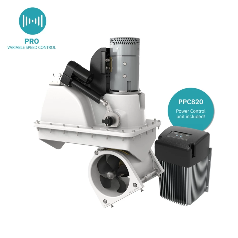 A PRO thruster system with variable speed control allows for more precise handling of the boat in all conditions, applying only the necessary power needed to complete your maneuver confidently.
